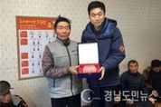 (경남도민뉴스) = 함양군 함양읍 석상길 주무관이 집중호우 사전재해예방을 통해 마을을 안전하게 보호했다며 주민들의 감사의 마음이 담긴 감사패를 받아 화제가 되고 있다. 함양읍에 따르면 지난 10일 원구마을(이장 이한식) 회관에서 노인회장 등 마을주민 50여 명이 참석한 가운데 함양읍행정복지센터 건설담당 석상길 주무관이 원구마을 주민들로부터 감사패를 받았다. 석상길 주무관은 2017년 7월부터 함양읍행정복지센터 건설담당에 근무하면서 투철한 사명감과 봉사정신으로 평소 주민의 어려움을 적극 수렴하고, 주민숙원사업과 각종 소규모 건설사업 등을 시행하여 주민들의 불편을 해소하는 데 기여했다. 원구마을 이종원 노인회장 “석상길 주문관은 평소 통수단면이 부족하여 재해위험이 있는 마을 소교량을 수시로 점검·순찰하였음은 물론, 지난 8.26 집중호우를 대비하여 교량하부 퇴적토를 신속하게 제거함으로써 수해피해로부터 안전하게 마을을 보호하여 주민 불편 최소화에 대한 감사한 마음을 담아 마을회에서 감사패를 전달하게 됐다”고 말했다. 감사패를 받은 석상길 주무관은 “공무원으로서 당연히 맡은 바 할 일을 한 것 뿐인데 주민들께서 인정해주
