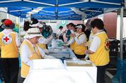 [경남도민뉴스=이상민 기자] 의령군 적십자봉사회는 22일 대의면사무소에서 수해로 인해 대피 중인 이재민들을 대상으로 점심 식사를 제공하는 봉사활동을 펼쳤다고 밝혔다. 이날 점심은 집중호우로 피해를 보고 임시 대피 중인 대의면 이재민과 자원봉사 300여 명에게 제공되었다. 적십자봉사회원은 무더운 날씨 속에서도 정성껏 콩나물냉국과 소불고기 등 점심 메뉴를 준비해 따뜻한 마음을 전했다. 한편 이날 행사에는 박완수 도지사와 오태완 군수가 현장을 직접 찾아 이재민들을 위로하고 적십사 봉사회 관계자들을 격려했다.