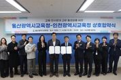 [경남도민뉴스=최재경 기자] 울산광역시교육청과 인천광역시교육청이 4일 오후 4시 울산교육청 접견실에서 교육·연구 분야 교류 활성화를 내용으로 하는 업무협약을 했다. 이번 협약은 두 교육청이 상호 신뢰와 협력을 바탕으로 독서·인문교육과 연구 분야 발전을 도모하고, 지역 문제 해결과 사회 공헌을 위한 공동 프로그램 개발을 함께 추진하고자 마련됐다. 두 교육청은 이번 협약으로 교육·연구 분야 교류 활성화를 위한 다양한 프로그램을 공동 운영하고, 상호 연계로 교육 발전을 꾀한다는 방침이다. 또한 지역사회의 문제해결과 공공 가치를 실현하는 사회 공헌 프로그램을 공동 개발하고 운영하는 데 협력하기로 했다. 특히, 울산광역시교육청의 대표 독서인문교육 프로그램 ‘책크인’ 과 인천광역시교육청의 대표 독서교육 프로그램 ‘읽걷쓰’를 연계해 두 기관의 우수 교육 자료(콘텐츠)를 상호 공유하고 발전시킬 계획이다. ‘책크인’은 ‘책으로 크는 우리 아이’와 ‘독서의 세계로 체크인(check-in)한다’는 의미를 담아 학생의 성장과 독서 문화 확산을 목표로 한다. ‘읽걷쓰’는 읽기(문해력), 걷기(기초