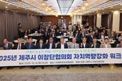 [경남도민뉴스=하형수 기자] 제주시 이장단협의회는 16일 아젠토피오레컨벤션에서 자치역량강화 워크숍을 개최했다. 이번 행사에는 제주시 7개 읍·면의 이장 90여 명이 한자리에 모여 마을 리더로서의 역량을 강화하고 지역 간 교류와 협력을 확대하는 시간을 가졌다. 1부 행사에서는 임안순 (사)전국농촌체험휴양마을협의회 회장이 강연자로 나서 농촌공동체 활성화를 위한 리더의 역할에 대해 특강을 진행했다. 이어진 2부에서는 지역 발전 유공자에 대한 표창 수여와 함께 지역 간 소통과 화합을 도모하는 자리가 마련됐다. 김재남 제주시 이장단협의회장은 “이번 워크숍을 통해 공통의 비전과 실질적인 발전 대안이 마련되길 기대한다”고 밝혔다. 김완근 제주시장은 “주민과 가장 가까운 곳에서 주민의 어려움을 해소해 주시는 이장님들의 헌신에 늘 감사드린다”고 격려하면서, “이장님들의 세심한 관심과 적극적인 소통이 현장 민원 해소의 밑거름이 되고 있다”며 이장들의 역할을 강조했다.