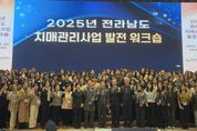 [경남도민뉴스=최인태 기자] 전라남도는 25일 고흥썬밸리 리조트에서 치매안심센터 종사자 등 150여 명이 참석한 가운데 2025년 전남도 치매관리사업 발전 워크숍을 열어 지역별 맞춤형 치매관리 모델을 모색했다. 전남도가 주최하고 전남광역치매센터가 주관한 이번 워크숍에선 치매관리사업을 위해 한 해 노력한 치매안심센터 종사자의 노고를 위로하고 치매관리사업 성과를 공유했다. 또한 치매관리사업 우수기관 포상, 치매관리사업 우수사례 발표, 전남형 치매관리 성과 공유, 치매안심센터 종사자 힐링교육 등 다양한 프로그램이 진행됐다. 시군 치매안심센터 종사자들은 현장에서 추진한 다양한 사업과 성과를 공유하며 지역별 특화된 치매관리 모델의 발전 방향을 함께 논의했다. 전남도와 시군 치매안심센터는 치매환자 등록관리, 치매 조기발견을 위한 검진, 치매예방관리프로그램 운영, 치매환자 가족 지원 등 맞춤형 서비스를 하고 시군 특화사업으로 치매친화 환경 조성을 위한 치매안심관리사 양성, 치매안심마을 운영하고 있다. 정광선 전남도 보건복지국장은 “초고령사회에서 치매는 중요한 사회적 관심사로 이번 워크숍이 발전적 치