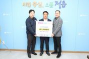 [경남도민뉴스=최인태 기자] DH그룹(동해금속(주), 나봄리조트 등) 서동해 회장이 지난 24일 무주군에 고향사랑기부금 5백만 원을 기탁했다. 이날 서동해 회장은 "무주군은 나봄리조트를 통해 소중한 인연을 이어가고 있는 곳”이라며 “무주군과의 상생을 위해 앞으로도 세심한 관심을 쏟을 것”이라고 밝혔다. 전북 완주군에 본사를 둔 DH그룹은 주력 사업인 상용차 및 승용차 부품 생산 분야에서 ‘작지만 강한 기업’으로서의 입지를 확고히 하고 있으며 무주군 설천면에서는 나봄리조트를 운영하고 있다. 봉사 경영을 통한 사회 환원에도 적극적인 것으로도 알려진 DH그룹은 2008년에 설립된 '권정순 장학재단'을 통해 저소득층 지원, 청소년 장학사업, 소외된 이웃돕기 등 사회공헌 활동에 연간 3억여 원을 투입하고 있다. 무주군에는 2023년부터 3년간 총 1천1백만 원의 고향사랑기부금을 기탁해 훈훈함을 전하고 있다.