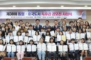 [경남도민뉴스=백상현 기자] 한국자유총연맹 대구북구지회(회장 최용원)는 10월 22일 오후 4시 북구청 4층 대회의실에서 공모전 당선자, 학부모, 내빈 등 150여 명이 참석한 가운데 '제30회 통일·호국도서 독후감 공모전 시상식'을 개최했다. 본 공모전은 통일 대한민국에 대한 염원, 올바른 역사의식과 나라 사랑의 중요성을 독서와 글쓰기를 통해 일깨워 주기 위한 것으로, 어느덧 30회를 맞이한 가운데, 접수된 327편 중 심사를 거쳐 44편이 입선작으로 선정됐다. 이번 공모전 장원은‘역사를 잊은 민족에게 미래는 없다, 신채호’를 읽고 느낌을 적은 복현초등학교 5학년 주아인 학생, ‘목숨을 걸고 만세운동을 주도한 용감한 유관순’을 읽고 느낌을 적은 강북초등학교 4학년 서아린 학생이 공동 수상했다. 최용원 회장은“통일과 호국에 대한 도서를 통해 얻은 지식과 사고의 힘이 나라 사랑의 마음과 미래의 희망과 지혜를 키워가는 밑거름이 되길 바란다.”라고 말했다. 배광식 북구청장은 “오늘 공모전에서 수상의 기쁨을 안은 학생들과 학부모님들께 축하의 말씀을 드리며, 장편소설 ‘객사’로 유명한 소설가 이태원의 고향이
