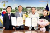 [경남도민뉴스=권중환 기자] 진주시는 2일 6·25전쟁 참전 유공자인 ‘故 김판식 일병’과 ‘故 윤도기 일병’의 유가족인 고인들의 조카 김형원, 윤성수 씨에게 각각 화랑무공훈장을 전수했다. 이번 훈장 전수식은 국방부와 육군본부의 ‘6·25전쟁 무공훈장 주인공 찾기 캠페인’ 사업에 따라 당시 공적에도 불구하고 여러 사정으로 수여되지 못했던 훈장을 뒤늦게나마 유가족에게 전함으로써, 호국영웅들의 숭고한 희생과 헌신을 기리고 그 명예를 선양하기 위해 마련됐다. ‘故 김판식 일병’과 ‘故 윤도기 일병’은 1954년에 국방부에서 무공훈장 수여 대상자로 결정했으나 당시 실물 훈장을 받지 못했다. 이번에 ‘6·25전쟁 무공훈장 주인공 찾기 캠페인’사업으로 70여 년 만에 조카를 통해 무공훈장을 받게 됐다. 훈장을 대신 받은 ‘故 김판식 일병’의 조카 김형원 씨는 "나라를 위해 목숨 바쳐 싸우셨던 작은아버지를 잊지 않고 찾아주시고 명예를 드높여 주셔서 정말 감사하다"며 소감을 밝혔다. 훈장을 전수한 조규일 진주시장은 "70여 년이 지난 오늘이라도 늦게나마 훈장을 전달해 드리게 되어 영광스럽게 생각한다”며 “조국을