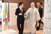 [경남도민뉴스=권중환 기자] 진주시는 지난 10월 2일, 불교계의 대표 선승이자 대한불교조계종 안국선원장이신 수불스님이 2025 진주전통공예비엔날레 행사장을 방문했다고 전했다. 이날 수불스님은 행사장 곳곳을 둘러보며 국내외 25명의 작가들이 선보인 150여점의 다양한 공예작품들을 관람했다. 이어 행사장 내 다도관(CRAFTea)에서는 조규일 진주시장과 차담회를 갖고 전통과 현대, 불교와 공예의 조화로운 가치를 나누는 시간을 가졌다 이번 차담회는 “사-이 BETWEEN, NATURE TO HUMAN”이라는 비엔날레 주제 속에서, 다도의 정신을 매개로 불교적 성찰과 공예의 창조성을 연결하는 특별한 자리였다. 수불스님은 “차를 마시는 일상 속의 행위가 곧 마음을 닦고 삶을 정화하는 수행이 될 수 있다”며, “전통공예와 다도가 함께하는 진주의 비엔날레가 인간과 자연, 종교와 예술을 아우르는 의미 있는 장이 되고 있다”고 전했다. 조규일 시장은 이에 공감하며“오늘 수불스님의 방문은 불교의 깊은 성찰과 공예의 창조성이 어우러져 진주가 지향하는 평화와 화합의 가치를 잘 보여주었다”며, “앞으로도 비