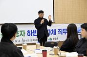 [경남도민뉴스=최인태 기자] 장수군은 지난 18일 장수읍 행복나눔터와 군청 전산교육장에서 신규 임용된 직원 26명을 대상으로 ‘2025년 하반기 신규임용자 자체 직무교육’을 실시했다고 밝혔다. 이번 교육은 공직 초기 단계에서 반드시 갖춰야 할 기본 소양과 실무 능력을 조기에 정립하도록 지원하기 위해 마련됐다. 이번 교육은 △공무원 노동조합의 이해 △회계 실무 △AI기반 디지털 역량 △소통 교육 △내면치유 프로그램 등 새내기 공무원들이 공직자로서의 기본적인 소양과 실무 능력 조기 정립을 위한 프로그램과 실무에서 바로 활용 가능한 실속있는 강의로 구성됐다. 또한 기존의 단순 이론 중심 교육 방식에서 벗어나 실무와 밀접한 참여형·체험형 프로그램을 강화해 신규 공직자들의 업무에 대한 이해를 높이고 동료들과 자연스러운 소통을 유도하는 활동도 진행됐다. 신규 공직자들은 실제 행정 업무에서 직면하는 상황을 미리 경험해 보는 실습형 교육을 통해 업무 전반에 대한 이해도를 높였고, 낯선 조직 문화에 적응하는 데 도움이 됐다는 점에서 직원들의 큰 호응을 얻었다. 특히 이날 교육에는 최훈식 장수군수가 참석