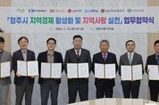 [경남도민뉴스=박만수 기자] 청주시는 13일 임시청사 직지실에서 청주상공회의소 및 지역 내 주요 기업과 청주사랑상품권(청주페이) 활성화를 위한 업무협약을 체결했다. 이날 협약식에는 이범석 청주시장과 차태환 청주상공회의소 회장, 박호현 SK하이닉스㈜ 부사장, 김영대 ㈜LG화학 청주공장 대외협력팀장, 최상운 에코프로 부사장, 김용술 ㈜LG에너지솔루션 오창주재임원, 이규득 ㈜심텍 상무가 참여했다. 협약은 지역경제 활성화와 민생경제 회복을 위해 소상공인과의 상생 협력을 강화하고, 지역 내 소비를 촉진하기 위해 마련됐다. 협약의 주요 내용은 △직원들에게 지급하는 선택적 복지제도(복지포인트, 포상금 등) 중 일부를 청주페이로 지급하는 방안 마련 △설·추석 등 명절 기간 전통시장 장보기 행사 추진 △청주페이 사용 적극 홍보 등이다. 특히, 지난 9일 복대가경시장에서 열린 설맞이 전통시장 장보기 행사에는 이번 협약에 참여한 기업 중 에코프로와 ㈜심텍 임원들이 이범석 청주시장과 함께 참여해 지역 상생의 의미를 더했다. 이 시장은 “지역경제 활성화를 위한 이번 협약에 적극 동참해준 기업들의 지역사랑 실천