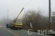 거창소방서(서장 손현호)는 29일 14시 32분경 거창읍 장백터널(함양→거창방향)에서 차량전복(단독사고)으로 1톤트럭에 있던 운전자를 구조해 병원으로 이송했다. 거창소방서 관계자는 영하의 날씨에는 터널 입구 등 빙판길이 갑자기 나타나는 경우가 있기 때문에 급제동 보다는 커브길이나 터널입구에서는 사전에 속도를 줄여서 진입하는 것이 무엇보다 중요하다고” 당부했다.