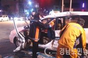 거창소방서(서장 손현호)는 지난 5일 23:00시경 거창군 거창읍 김천리 금천탕 사거리에서 심야시간대 점멸신호등으로 바뀐상태에서 5톤차량과 카렌스 차량이 충돌한 사고현장에 출동하여 카렌스 차량에서 운전자 정모씨와 동승자 우모씨를 구조했다고 밝혔다. 이 사고로 운전자 정씨는 좌측늑골부 통증호소, 동승자 우씨는 요통을 호소해 현장에 도착한 119 구조대원과 구급대원들이 응급처치 후 인근병원에 이송했다. 거창소방서 이종은 구조구급담당은 “점멸신호가 들어온 교차로를 통과할 때에는 일단 감속 후 도로상황을 살피고 통과하여야 한다”고 말했다.