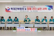 [경남도민뉴스=김부경 기자] 통영시는 지난 5일 시청 회의실에서 확대간부회의와 읍면동장회의 직후, 기관장을 비롯한 5급 이상 간부공무원이 참석한 가운데 '청렴리더 실천서약'을 실시했다. 이번 서약식은 지난 5월 시장과 부시장, 국·소장을 대상으로 처음 진행했던 ‘청렴실천서약’을 한 단계 더 확대한 것으로, 이번에는 전 부서장과 읍면동장까지 참여해 청렴실천 의지를 함께 다졌다. 서약에는 청렴3무(無갑질·無특혜·無소극) 실천 운동이 핵심 내용으로 담겼다. 간부공무원 스스로 모범이 돼 갑질 없는 공직사회, 특혜 없는 공정한 행정, 적극행정을 펼쳐 나가겠다는 약속이다. 이날 서약식은 단순한 선언이 아니라, 참석자 모두가 한마음으로 청렴을 실천하겠다는 뜻을 다시 확인하는 자리였다. 시는 이번 서약이 간부공무원의 약속에 머무르지 않고 현장의 모든 직원에게 자연스럽게 이어져, 시민이 체감하는 청렴한 시정으로 확산될 수 있도록 적극 추진할 계획이다. 천영기 통영시장은 “간부공무원들이 앞장서 청렴을 생활 속에서 실천할 때 조직 전체가 변화한다”며 “청렴3무 실천 운동을 통해 통영시를 시
