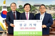 [경남도민뉴스=권중환 기자] 진주문화원 김길수 원장은 지난 9월 30일 기업인의 방에서 지역사회 어려운 이웃돕기 성금 300만 원을 진주시복지재단에 기탁했다. 이번 성금은 최근 수해로 피해를 입은 주민들과 경제적 어려움을 겪고 있는 이웃을 돕기 위해 문화원장 취임식을 생략하고, 그 비용을 나눔으로 대신해 마련된 것이다. 김길수 원장은 “지역사회의 어려움을 함께 나누는 것이 당연한 책무라 생각한다” 며 “앞으로도 진주문화원이 지역민과 함께하는 열린 문화 공간으로 자리매김할 수 있도록 최선을 다하겠다”고 전했다. 조규일 시장은 “지역사회 어려운 이웃을 위한 김길수 원장님의 나눔 실천에 감사드린다”며 “기탁해 주신 성금은 도움이 필요한 이웃을 위해 소중히 사용하겠다”고 말했다. 한편, 진주시복지재단은 복지사각지대 해소와 시민들의 삶의 질 향상을 위해 다양한 복지사업을 추진하며, 지역사회 복지 향상과 나눔 문화 확산을 위해 지속적인 노력을 기울이고 있다.