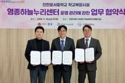 [경남도민뉴스=김용욱 기자] 영종구 출범 원년을 맞아 올해 새롭게 개관한 ‘영종하늘누리센터’의 안정적·체계적 운영을 위해 인천시 중구가 인천시 교육청, 운서중학교와 손을 맞잡았다. 김정헌 인천 중구청장과 도성훈 인천시 교육감, 김성오 운서중학교장은 10일 오후 영종하늘누리센터 하늘배움터에서 이러한 내용의 ‘인천운서중 학교복합시설(영종하늘누리센터)의 운영과 관리에 관한 업무 실시협약’에 서명했다. ‘영종하늘누리센터’는 인천 중구가 운서중학교 부지 내 일부를 무상으로 제공받아 하늘초롱길 69 일원에 지하 1층, 지상 4층 연면적 5,635㎡ 규모로 건립한 ‘학교복합시설’이다. 지난 2024년 6월 첫 삽을 떠 올해 1월 건립 공사를 모두 마쳤으며, 3월 준공식을 개최한 후 현재는 운영 본격화에 행정력을 집중하고 있다. 특히 다함께돌봄센터 7호점(거점형), 육아종합지원센터, 가족센터, 영종하늘누리 작은도서관이 지난 2월부터 입주해 다양한 복지·문화 서비스를 구민들에게 제공하고 있다. 이번 협약은 지난 2021년 영종하늘누리센터 건립을 위해 체결한 기본 업무협약의 내용을 한층 더 구체화함으로