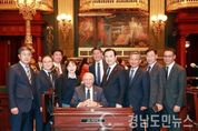 (경남도민뉴스) = 글로벌 엑스포 홍보활동을 펼치고 있는 서춘수 함양군수가 미국 펜실베니아주 상·하원을 방문해 함양군과 2020함양산삼엑스포를 홍보했다. 지자체 차원에서 미 주정부 상·하원을 직접 방문해 의원들을 대상으로 홍보활동을 펼치는 것은 상당히 이례적인 일로 서 군수의 글로벌 홍보활동이 빛을 발하고 있다. 함양군에 따르면 서춘수 함양군수를 단장으로 황태진 군의회의장 등이 참여한 함양군 국제우호교류단이 현지시간 29일 미국 펜실베니아주 상·하원을 찾아 함양군과 2020함양산삼항노화엑스포 홍보활동을 펼쳤다. 함양군은 지난 2016년 펜실베니아주 몽고메리 타운십과 자매결연을 맺은 후 지속적인 우호교류를 이어가고 있으며, 지난 4월에는 펜실베니아주 밥 멘취 공화당 상원 원내 대표를 비롯한 대표단이 우호교류를 위해 함양군을 찾았으며, 서춘수 함양군수가 밥 멘취 상원의원을 함양군 홍보대사로 위촉하고, 서춘수 군수는 펜실베니아 몽고메리카운티 명예시민증을 수상하는 등 돈독한 관계를 유지하고 있다. 이날 오전 함양군 우호교류단은 펜실베니아주정부 주재로 주정부청사에서 부지사와 상원 및 하원의원 등 10여명이 참석한 가운데