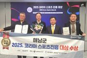 [경남도민뉴스=최인태 기자] 해남군이 2025 코리아 스포츠진흥대상에서 리더부문 대상을 수상하며 스포츠마케팅 역량을 인정받았다. 코리아 스포츠진흥대상은 대한민국 스포츠 진흥과 발전에 기여한 스포츠단체, 지방자치단체, 기업, 인물 등을 선정해 모범적 사례를 널리 알리기 위해 2019년 제정된 상으로, 올해로 7회째를 맞았다. 스포츠동아에서 주최하고, 문화체육관광부와 대한체육회, 국민체육진흥공단에서 후원하고 있다. 시상식은 18일 서울시 종로구 동아미디어센터에서 열렸다. 해남군은 리더부문 대상으로, 올해 전국단위 대회와 전지훈련팀 유치를 통해 130억 원 규모의 직간접 지역경제 활성화 효과를 창출하고 안정적인 스포츠마케팅 모델을 구축한 점을 높이 평가받았다. 특히 지난 10월 국내 유일의 LPGA 정규대회인‘2025 LPGA BMW 레이디스 챔피언십’을 성공적으로 개최해 세계적인 스포츠마케팅 역량을 인정받은 바 있다. 이번 LPGA대회에는 6만여명의 관람객이 방문하면서 60여억원의 경제효과를 거둔 것은 물론 성공적인 대회 운영으로 해남을 전세계에 알리는 계기가 됐다는 평가이다.