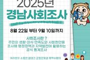 [경남도민뉴스=김춘호 기자] 합천군은 8월22일부터 9월10일까지 군정운영과 정책수립의 기초자료로 활용하기 위해 ‘2025년 경남 사회조사’를 실시한다. 이번 조사는 관내 표본가구 약800가구에 거주하는 만15세 이상 가구주 및 가구원을 대상으로 ▲주거교통 ▲문화여가 ▲일자리노동 ▲소득소비 ▲교육 등 5개분야 160개 항목으로 군민의 삶의 질과 관련된 밀접한 주제들을 조사하게 된다. 조사방법은 조사원이 직접 가구를 방문해 조사표를 작성하는 방문면접조사를 원칙으로 하지만, 상황에 따라 인터넷 조사를 병행할 예정이다. 응답내용은 통계법에 따라 철저히 비밀이 보장되고 통계작성 목적 이외에는 사용할 수 없도록 엄격히 보호된다. 김윤철 합천군수는 “경남 사회조사는 군민의 생활과 여론을 종합적으로 파악할 수 있는 조사로, 지역개발 정책 수립 기초자료로 반영되는 매우 중요한 자료이다” 며 “사회조사에 적극적인 참여 및 협조를 부탁드린다”고 말했다.