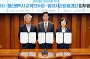 [경남도민뉴스=최재경 기자] 울산교육연수원은 21일 밀양시청 소회의실에서 경남 밀양시, 밀양시관광협의회와 지역 자원을 활용한 현장 체험 연수 지원 등을 내용으로 하는 업무협약을 체결했다. 이번 협약은 밀양시가 보유한 교육 관광 자원을 적극 활용해 교직원의 연수 참여 기회를 확대하고 교직원의 역량을 높이고자 추진됐다. 이번 협약으로 밀양시는 주요 교육 관광 자원의 정보를 제공하고 관광협의회는 프로그램을 연계 지원한다. 울산교육연수원은 이번 협약에 따라 오는 11월 밀양시 단장면에 있는 선샤인 밀양 테마파크에서 지방공무원과 교육공무직원을 대상으로 현장 체험형 연수를 진행할 예정이다. 한현숙 원장은 “이번 협약은 교육, 문화, 관광을 통합한 연수 프로그램 운영의 토대를 마련했다는 점에서 큰 의미가 있다”라며 “앞으로도 지역 자원을 교육 제작물로 적극 활용해 연수생에게 현장 중심의 체험 기회를 제공하겠다”라고 말했다.