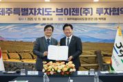 [경남도민뉴스=하형수 기자] 제주특별자치도가 재생에너지 활용 과정에서 발생하는 전력 불균형 문제를 해소하기 위해 인공지능(AI) 기반 전력중개 플랫폼 기업 브이젠㈜과 협력한다. 제주도는 15일 오후 4시 30분 도청 백록홀에서 브이젠㈜과 신설 투자 및 신규 채용 등을 주요 내용으로 하는 투자협약을 체결했다. 협약식에는 오영훈 제주도지사와 경제활력국장, 기업투자과장, 분산에너지정책팀장, 대외협력특보, 에너지특보 등 도 관계자와 백승엽 브이젠 대표, 김규태 이사, 김명진 프렌드투자파트너스 상무 등이 참석했다. 브이젠은 인공지능(AI) 기술로 전력 생산량과 수요를 실시간으로 예측·조절하는 전력중개 플랫폼 기업이다. 전국 곳곳에 흩어진 태양광 발전소, 전기차 배터리, 건물 에너지저장장치(ESS) 등을 하나의 가상발전소(VPP)처럼 통합 운영하는 기술을 보유하고 있다. 날씨에 따라 생산량이 들쭉날쭉한 재생에너지를 AI가 예측하고 조절해, 안정적으로 전기를 공급하고 거래할 수 있게 만드는 게 핵심이다. 본사를 JDC 스마트빌딩으로 이전해 제주를 거점으로 사업을 전개하고 있으며, 202