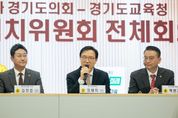 [경남도민뉴스=김동규 기자] 경기도교육청과 경기도의회가 2026년도 본예산 편성 과정에서 총 2,000억 원 규모의 협치 예산을 공동으로 추진하기로 합의하며 교육 협력의 새로운 전기를 열었다. 경기도교육청은 5일 도의회 예담채에서 ‘경기도의회-경기도교육청 제1차 여야정 협치위원회 전체회의’를 개최했다. 이번 회의는 도의회와 교육청이 함께 2026년도 협치 예산 합의문에 서명하며 지속 가능한 교육정책 협력체계를 공고히 하고자 마련됐다. 공동의장 3인은 합의문에 서명하며 교육청과 도의회 간 협치의지를 공식화했다. 합의를 통해 ▲현장 중심 학교운영 ▲교육행정 개선 ▲미래교육 전환 ▲교육환경 개선 ▲맞춤형 교육확대 등 5대 분야 총 2,000억 원 규모 협치 예산을 공동 추진하기로 했다. 임태희 교육감은 인사 말씀을 통해 “여야정 협의가 늘 화두로 떠오르는데 실제로 결실은 많치 않다”며 “이런 점에서 대단히 성숙하고 건강한 도정의 협치 모습을 보이는 현장이라고 생각한다”고 말했다. 이어 “최종적으로 학생과 교육 현장의 학부모, 교직원들을 위해 앞으로 후속 조치를 함께 해주시길 바란