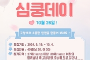 [경남도민뉴스=이형섭 기자] 고성군은 오는 10월 26일, 고성군 미혼남녀를 대상으로'두근두근, 고성 청춘남녀 ‘심쿵데이’'를 개최한다. 이번 행사는 바쁘게 살아가는 청년들에게 만남과 소통의 기회를 제공하고 결혼에 대한 긍정적인 인식을 심어주고자 기획됐다. ‘심쿵데이’는 연애코칭, MBTI 커플 레크리에이션, 일대일 매칭 대화 등 어색한 분위기를 날려버릴 설렘 가득한 프로그램으로 고성청년센터에서 진행될 예정이다. 군은 남녀 각 20명씩 총 40명을 모집하며 행사 참가 신청은 9월 19일부터 10월 4일까지다. 참가대상은 27세(1997년생) 이상 39세 이하(1985년생)의 미혼남녀 중 고성군에 주소를 두고 있거나 관내 기업체 및 공공기관 등에 근무하는 근로자라면 누구나 참가할 수 있다. 행사 참가를 희망하는 경우 고성군 누리집(고성군소개-군청안내-부서-인구청년추진단-공지사항)에서 신청서를 내려받아 신청서와 함께 주민등록초본, 재직증명서 등의 증빙서류를 갖춰 고성군 통합예약시스템 또는 이메일로 신청하면 된다. 이상근 고성군수는 “고성의 청춘남녀가 이번 행사를 통해 소중한 인연을 만들고, 나아가 인생의 동반자로서 가정을 꾸리게 된다면 더할 나위 없이 좋은 일이