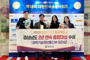 [경남도민뉴스=구인애 기자] 경상남도는 제18회 대한민국소통어워즈에서 2년 연속 ‘종합대상’인 과학기술정보통신부 장관상을 수상하며, 공공 소통을 선도하는 지자체로서의 위상을 굳혔다. ‘대한민국소통어워즈’는 한국인터넷소통협회가 주관하고 과학기술정보통신부 등이 후원하는 국내 최고 권위의 디지털 소통 및 마케팅 시상식으로, 기업과 공공기관의 온라인 소통 역량을 종합적으로 평가해 수여한다. 경남도는 지난해에 이어 올해도 ‘종합대상’을 차지하며 2년 연속 영예를 이어갔다. 13일 오후 서울 프레스센터에서 열린 시상식에서 도는 ‘종합대상’을 포함해 △인터넷소통대상(광역지자체 부문), △소셜미디어대상(광역지자체 부문), △디지털콘텐츠대상(ESG 부문) 등 총 4개 부문에서 대상을 수상했다. 이와 함께 지난달 17일 열린 ‘제15회 2025 대한민국SNS대상’에서도 광역지자체 부문 ‘최우수상’을 3년 연속 수상하며, 올해만 사회관계망서비스(SNS) 관련 어워즈 5개 부문에서 수상하는 쾌거를 이뤘다. 경남도 공식 유튜브 채널 ‘경남TV’는 지난해 실버버튼을 획득한 데 이어 올해 10월 구독자 20만 명