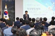 (경남도민뉴스) = 거창군은 지난 7일 군청 대회의실에서 소속 공무원 200여 명이 참석한 가운데 찾아가는 적극행정 법제 가이드라인 교육을 했다. 이번 교육은 법제처에서 주관한 방문형 교육으로 적극행정과 법제 가이드라인을 공직사회에 확산 전파하고 일선에서 행정을 수행하는 실무공무원의 전문 역량을 강화하기 위해 마련됐다. 법제처 법제관으로 근무하다 현재 경상남도 법제협력관으로 근무 중인 최봉래 법제관이 강사로 나서 헌법과 법률에 따라 주어진 권한과 책임을 다하여 공익을 증진하고 국민에게 적극적으로 봉사하는 “적극행정”을 위한 적극적 법령해석의 기준과 사례를 중심으로 강연했다. 이날 교육은 규제의 불필요한 확대해석을 금지하고 주민의 편익 증진과 관련된 규정은 넓게 해석하며 사회적 약자를 최대한 배려하는 방향으로 해석하는 법령의 적극적 해석을 강조했다. 이은주 기획예산담당관은 “이번 교육을 통해 공직자가 법령업무 처리 시 적극행정을 실천할 수 있을 것으로 기대한다”고 말했다.