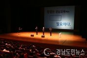 (경남도민뉴스) = 경상남도교육청(박종훈 교육감)은 도민이 신뢰하는 청렴한 경남교육 실현을 위하여 26일 3.15아트센터 대극장에서 경남교육가족과 도민 등 1,000여 명과 함께하는「2019년 경남교육 청렴 문화 콘서트」를 개최했다. 이번 콘서트는 기존 청탁금지법을 주제로 하는 이론 중심의 강의식 교육에서 벗어나 흥미와 감동을 더한 팝(pop)과 오페라(opera)가 접목된 팝페라에 청렴 토크를 가미한 콘서트 형식으로 100분간 꾸며졌다. 청렴도 분석 전문 강사의 강의와 팝페라 가수의 공연이 어우러진 이번 청렴콘서트는 ‘지금 이 순간’ 오프닝 곡을 시작으로 ‘오솔레미오’, ‘일몬도’, ‘사랑’ 등 수준 높은 공연과 교육가족이 함께 참여하는 퍼포먼스를 선보였다. 특히, 청렴 토크에서는 경남교육청의 2018년 청렴도 평가 결과를 냉철하게 분석하고 취약분야에 대한 맞춤형 해결방안을 공유하는 등 청렴에 관한 내용을 알기 쉽게 풀어내어 몰입도를 높였고, 최근 사회적 이슈인 갑질 근절 등 다양한 내용까지 함께 다루어 높은 호응을 얻었다. 박종훈 교육감은 “청렴은