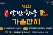 [경남도민뉴스=경남도민뉴스 기자] 공주시가 주최하고 공주알밤한우사업단·세종공주축협이 주관하는 ‘제2회 공주알밤한우 가을잔치’가 제70회 백제문화제 기간 개최된다. 시는 백제문화제가 열리는 9월 28일부터 10월 6일까지 9일간 공주 금강신관공원 행사장에서 공주알밤한우 가을잔치를 진행해 공주시 대표 한우브랜드인 알밤한우를 홍보할 계획이다. 이를 위해 한우 직거래 장터와 셀프 구이 존을 운영하고 품질 좋은 공주알밤한우를 정상가 대비 10에서 20% 할인된 가격에 판매한다. 특히 한우 불고기를 무료로 시식할 수 있는 공주알밤한우 불고기 시식 행사도 진행해 외부 관람객들이 공주알밤한우의 우수한 품질을 직접 확인하는 기회도 제공할 예정이다. 이와 함께 공주알밤한우 홍보관을 운영해 공주알밤한우의 특성과 생산 과정을 알리는 다양한 정보를 제공하고, 소셜미디어(SNS) 이벤트 참여자에게는 공주알밤한우 에코백을 증정한다. 안영희 농식품유통과장은 “이번 행사를 통해 공주알밤한우의 브랜드 가치를 높이고 지역 축산업의 활성화를 도모하는 기회로 삼을 계획이다”라고 말했다.