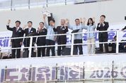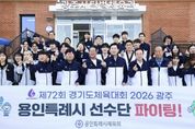 [경남도민뉴스=김동규 기자] 이상일 용인특례시장은 16일 경기도 광주시에서 열린 ‘제72회 경기도체육대회 2026 광주’에 용인을 대표해 출전한 선수단을 응원했다. 이 시장은 ‘광주 G-스타디움’에서 열린 경기도체육대회 개회식에서 용인특례시 선수단과 함께 입장식에 참여하고, 대회에 참가한 31개 시·군에 세계 반도체산업 중심도시로 도약한 용인특례시의 발전상을 알렸다. 개막식에 이어 이상일 시장은 선수단과 만난 만찬장에서 “용인을 대표해 경기도체육대회에 참가한 선수들이 좋은 성적을 거둬 용인의 위상과 시민의 자부심을 높여 주기를 바란다”며 “선수들이 부상없이 경기를 잘 치르고, 평소 갈고 닦은 기량을 잘 발휘해 값진 성과를 거두기를 바란다”고 말했다. 이 시장은 “인구 150만 광역시로 향하는 여정에 있는 용인특례시는 반도체산업을 비롯해 첨단산업 중심도시 성장하고 있고, 문화와 예술, 생활체육 등 다양한 분야에서도 눈부시게 성장하고 있다”며 “용인특례시 선수단이 앞으로도 좋은 성적을 거두고, 시민 누구나 체육활동을 즐길 수 있도록 체육인프라를 확충에 많은 노력을 기울이겠다”고 했다. 개막식에 앞서 이