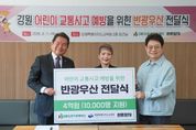 [경남도민뉴스=류종길 기자] 강원특별자치도교육청은 9월 11일 오전 11시, 본청 접견실에서 DB김준기문화재단, DB손해보험, 한문철TV와 함께 ‘강원 어린이 교통사고 예방을 위한 반광우산 전달식’을 개최했다. 이번 전달식은 DB김준기문화재단의 사회공헌 활동의 일환으로 마련됐으며, 강원특별자치도 내 초등학교 1학년 학생들을 대상으로 총 1만 개의 반광우산을 지원한다. 반광우산은 야간이나 우천 시 운전자의 시야 확보를 도와 교통사고 위험을 줄일 수 있도록 제작된 안전용품으로, 학생들의 안전한 통학에 크게 기여할 것으로 기대된다. 전달식에는 신경호 교육감을 비롯하여 DB김준기문화재단 강은정 이사, DB손해보험 심재철 부문장, 한문철TV 한문철 변호사 등이 참석하여 교육청·기업·민간이 함께하는 교통안전 협력체계를 확인하는 자리가 됐다. DB김준기문화재단 관계자는 “작은 우산 하나가 아이들의 생명을 지킬 수 있다는 생각으로 이번 캠페인을 기획했다”며, “앞으로도 어린이 교통안전을 위한 사회공헌 활동을 지속해 나가겠다”고 밝혔다. 신경호 교육감은 “이번 반광우산 지원은 학생들의 안전한 등·하교