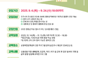 [경남도민뉴스=권중환 기자] 진주시는 오는 9월 24일까지 ‘2025년 진주시 신중년 인생이모작학교’(이하 인생이모작학교) 교육생을 모집한다고 밝혔다. 작년에 이어 올해 2회째를 맞는 인생이모작학교는 신중년 세대를 대상으로 일, 여가, 재무, 건강 등 생애설계 전반에 대한 교육을 운영함으로써, 신중년의 은퇴 후 진로 탐색의 기회를 제공하고 제2의 인생을 설계하는 데 도움을 주고자 기획한 프로그램으로 지난해 큰 호응을 얻은 바 있다. 올해 교육은 10월 14일 ‘입학식’을 시작으로 11월 13일까지 총 10회에 걸쳐 진행되며 ▲배움으로 시작하는 명품인생 ▲그림으로 알아보는 소통법 ▲스마트폰으로 감성사진 찍기 ▲음악 한 스푼, 내 마음 두 스푼 ▲디지털 숏폼 영상, AI로 첫걸음 ▲재무 : 연금 및 적금 이야기, 건강보험 폭탄 피하기 ▲직업의 세계 미리 맛보기 ▲ 귀로 보는 건강관리 ‘이혈테라피’▲현장학습 등으로 구성된다. 교육비는 전액 무료이며, 공고일 기준 진주시에 주소를 두고 있는 50세 이상 64세 이하(1961~1975년생)의 시민이면 신청 가능하다. 모집인원은 25명으로 입학신청서 서류심사를 통하여 선발할 예정이다. 자세한 내용은 진주시청 누리집(고시