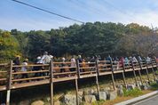 [경남도민뉴스=최인태 기자] ‘2025 전북 삼천리길 페스티벌 in 남원 – 지리산 구룡폭포길 행복걷기 행사’가 지난 11월 7일, 남원시 주천면 일원에서 성황리에 열렸다. 이번 행사는 남원시와 전북생태관광육성지원센터가 공동 주최·주관했으며, 천리길이자 삼천리길 동부권 코스 중 하나인 구룡폭포길을 걷는 행사를 통해 남원의 아름다운 자연환경을 널리 알리고, 생태관광 활성화 및 지속가능한 지역관광 기반 마련을 도모했다. 행사에는 이성호 남원 부시장, 김영태 남원시의회 의장, 전북특별자치도 탄소중립정책과 한순옥 과장, 이정린 전북특별자치도의회 의원 등 주요 인사와 시민, 관광객 등 300여 명이 함께해 뜻깊은 자리가 됐다. 참가자들은 남원시 호경주차장을 출발해 육모정과 구룡폭포를 지나 주천면 흙탕물저감시설까지 약 4km 구간을 함께 걸으며, 가을 정취가 깃든 지리산의 자연경관을 만끽했다. 행사 중에는 생태해설사들의 현장 해설 프로그램이 운영되어 지리산의 생태적 가치와 지역 문화유산을 소개하며, 단순한 걷기를 넘어 배움과 쉼이 어우러진 생태체험의 장으로 진행됐다. 이성호 남원 부시장은 “아름다