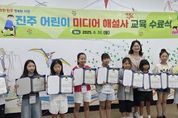[경남도민뉴스=권중환 기자] 진주 어린이들이 직접 영상제작과 해설을 배우며 지역문화를 소개하는 ‘어린이 미디어 해설사’로 나서 눈길을 끌고 있다. 진주시는 30일 진주익룡발자국전시관에서‘진주 어린이 미디어 해설사’ 수료식을 개최해 7주간의 과정을 마친 어린이들에게 수료증을 수여하고 본격적인 활동에 나선다고 밝혔다. 이번 ‘진주 어린이 미디어 해설사’ 프로그램은 ▲진주시립이성자미술관 ▲진주익룡발자국전시관 ▲진주청동기문화박물관 ▲진주남강유등전시관 등 4개 문화시설이 공동으로 추진해 지난 7월 5일부터 8월 30일까지 7회에 걸쳐 매주 토요일에 운영됐다. 참가 어린이들은 단순히 전시관을 관람하는 것을 넘어 영상 콘텐츠의 기획과 촬영, 편집, 해설 등 전 과정을 직접 체험하며, 진주의 역사와 문화를 자신만의 시각으로 풀어내 관심을 모았다. 특히 어린이들이 제작한 영상 콘텐츠는 각 시설의 문화소개 자료로 활용될 예정이며, 어린이 미디어 해설사 프로그램은 문화와 디지털 기술이 융합한 창의적 해설사 양성 모델로도 주목받고 있다. 또한 수료생들은 ‘어린이 미디어 해설사’로 공식 인정받고, 자원봉사 실