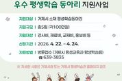 [경남도민뉴스=김부경 기자] 거제시가 지역사회 학습공동체 형성과 배움문화를 조성하기 위해 '2026년 거제시 우수 평생학습 동아리 지원사업'을 실시한다. 지원대상은 관내 소재 평생학습동아리이며, 선정된 학습동아리 5개팀에 강사비, 교재·재료비, 홍보비 등 동아리 활동에 필요한 직접 운영 경비(100만원)를 지원한다. 신청방법은 공모신청서를 작성하여 거제시 평생교육과로 방문접수하면 되고, 접수기간은 4월 22일부터 4월 24일까지이다. 기타 자세한 사항은 거제시 평생학습관 홈페이지 공지사항 또는 거제시 평생교육과 평생학습팀으로 문의하면 된다.