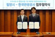 [경남도민뉴스=나희준 기자] 경남 밀양시는 31일 시청 소회의실에서 안병구 밀양시장, 이동욱 한국관광공사 부산울산경남지사장 등 양 기관 관계자들이 참석한 가운데 ‘지역사랑 휴가지원사업 기반 체류형 관광 활성화를 위한 업무협약’을 체결했다. 이번 협약은 관광객의 체류시간을 늘리고 지역 내 소비를 유도해 지역경제에 활력을 불어넣고자 마련됐다. 양 기관은 밀양의 풍부한 관광 자원을 바탕으로 체류형 관광 기반을 공고히 다져나갈 계획이다. 협약에 따라 한국관광공사는 지역사랑 휴가지원사업 계획 승인과 통합 홍보, 사업 모니터링, 성과 점검 등을 맡는다. 밀양시는 세부계획 수립과 사업 추진, 안내·신청·정산 시스템 운영, 국민 여행경비 50% 환급 지원, 관광 홍보와 마케팅을 담당한다. 그동안 밀양시와 한국관광공사는 지역관광추진조직(DMO) 사업, 관광두레 사업, 디지털 관광주민증 사업 등 다각적인 협력을 이어왔다. 특히 올해는 무장애관광 DB 표준화 구축사업, 지역사랑 휴가지원사업, 지역사랑 철도여행 ‘여행가는 달’ 행사 등을 추진하며 협력 범위를 확대했다. 앞으로 시는 무장애 관광환경 조성 및 인구감소지역