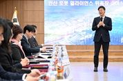 [경남도민뉴스=김동규 기자] 안산시가 대한민국 로봇산업 중심 도시로 도약하기 위해 ‘안산시 로봇산업 육성 및 지원에 관한 조례’를 제정·시행하며 로봇도시 조성에 속도를 내고 있다. 시는 지난 27일 시청 제1회의실에서 지자체 관계자와 대학, 로봇 유관기관, 로봇 수요기업 전문가 등으로 구성된 실무 중심 협의체 ‘안산 로봇얼라이언스’ 위촉식을 열고 제1회 정기회의를 개최했다고 28일 밝혔다. 이날 출범한 ‘안산 로봇얼라이언스’는 기존 실무협의체를 확대·개편한 조직으로, 로봇 수요처와 중앙부처 유관기관까지 참여 범위를 넓혀 실효성을 강화했다. 안산사이언스밸리(ASV) 유관기관을 비롯해 안산상공회의소, 스마트허브경영자협회, 스마트허브여성경영자협의회 등 수요기관과 한국로봇산업진흥원, 한국로봇산업협회 등 전국 단위 기관 전문가 20여 명이 위원으로 참여한다. 위촉식 이후 진행된 회의에서는 얼라이언스를 이끌어갈 회장과 부회장을 호선으로 선출했다. 회장에는 박태준위원, 부회장에는 박상민위원이 각각 선출됐다. 이어 시가 수립한 ‘로봇산업 육성 기본계획’을 공유하고, 단계별 실행 전략과 협력 방안을 논의했다. 위
