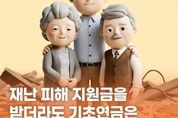 [경남도민뉴스=서용재 기자] 재난 피해 지원금을 받더라도 기초연금은 안정적으로! 태풍·화재 등으로 피해를 입고 받은 지원금 때문에 기초연금이 줄어들지 않도록 제도를 개선했습니다. 기초연금은 어르신의 생활을 돕는 제도입니다. 만 65세 이상 어르신 가운데 소득 하위 70%에 해당하면 받을 수 있습니다. · 재산과 소득을 반영한 소득인정액이 - 단독가구 247만 원 이하 → 최대 34만 9700원 - 부부가구 395만 2000원 이하(2026년 기준) → 최대 55만 9520원(2026년 기준) ▷ 기초연금을 받을 수 있습니다. 재난지원금, 기초연금 소득인정액 계산에서 제외되도록 바뀝니다. · 특별재난지역으로 선포되어 재난 피해로 받은 재난지원금(정부 지원금·후원금·민간 보험금) 그동안은 금융재산으로 반영되어 기초연금이 줄거나 못 받는 경우가 있었습니다. ▷ 이제는 이런 불이익을 받지 않도록 기초연금 소득인정액 계산에서 제외됩니다. 피해 회복 지원은 안정된 생활 유지로 이어져야 합니다. 재난과 사고를 겪은 분들이 사회 안전망에서 소외되는 일이 없도록 복지부가 제도를
