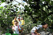 31일 경남 거창군 위천면 당산마을 당송체험농원에서 방학을 맞은 아이들이 잘익은 아로니아를 수확 체험을 하고 있다.