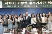 (경남도민뉴스) = 거창군의 홍보대사 역할을 수행하게 될 제10기 거창한 홍보기자단이 30일 위촉식을 갖고 본격적인 활동에 나섰다. 이번에 위촉된 기자단은 20대에서 60대에 이르기까지 고른 연령층으로 구성됐고, 2020년 6월까지 활동계획으로 관광지, 농특산물, 축제, 행사와 군정 시책 등 전반에 걸친 소식을 취재해 ‘거창韓거창 블로그’에 게재함으로써 온라인을 통해거창을 홍보하게 된다. 지난해 네이버 메인 ‘우리 동네’ 코너를 신설해 운영한 결과 방문자가 연간 32만 명에서 58만 명으로 81% 증가하는 등 거창군을 전국에 알리는데 큰 역할을 했다. 특히, 블로그에서 가장 인기 있었던 검색어는 ‘거창군청’(30.75%)이며, ‘수승대’(16.67%)가 두 번째, ‘직불금 신청관련’(12.63%)이 그 뒤를 이었다. 구인모 거창군수는 “거창한 홍보기자단은 일선에서 거창의 이미지를 만들고 홍보대사로서 중요한 역할을 하고 있다”며 “거창의 숨겨진 매력을 구석구석 찾아 대내외로 알리는데 힘써주시길 당부드린다”고 격