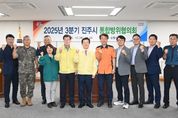 [경남도민뉴스=권중환 기자] 진주시통합방위협의회는 12일 오전 시청 5층 상황실에서 통합방위 위원 20여 명이 참석한 가운데 ‘2025년 3분기 진주시 통합방위회의’를 개최했다. 진주시통합방위협의회는 22개 기관 상호 간의 유기적인 협조와 지원체계를 구축해 전시 및 비상사태 발생 시 지역 방위를 총괄하는 협의기구로, 유사시 지역안전을 조기에 회복하고자 분기별로 회의를 개최한다. 이날 회의에서는 지난 7월 호우피해에 따른 특별재난지역선포, 유관기관 협조사항에 대한 공유, 국내외 최신 안보환경 동향들에 대한 공유 등 방위태세 확립에 대한 논의가 이루어졌다. 조규일 진주시장은 “지난 7월 호우피해 응급복구 지원에 적극 협조해 준 경찰서, 소방서, 군부대 등 유관기관에 진심으로 감사드린다”라면서 “시민이 행복한 부강한 진주를 만들기 위해서는 굳건한 안보태세를 기반으로 유관기관 간 긴밀한 협조체계가 필요하며, 항상 빈틈없는 대비로 시민의 안전을 지키는 데 최선을 다할 것이다.”라고 강조했다. 진주시는 앞으로도 민・관・군・경의 유기적인 협조 속에 실전과 같은 훈련과 대응체계를 강화해 나가며, 통합방위태세 확립
