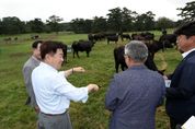 [경남도민뉴스=하형수 기자] 제주특별자치도는 제주흑우를 고부가가치 지역 명품 브랜드로 육성하기 위해 25일 제주흑우 생산 및 연구개발 관련 현장을 방문했다. 이번 현장방문은 민선8기 출범 3주년을 맞아 추진하는 ‘민생로드’의 15번째 현장으로, 제주만의 독특한 가치를 지닌 제주흑우의 정책 현장을 직접 확인하고 농가와 연구진의 생생한 목소리를 듣기 위해 마련됐다. 이번 방문은 오후 4시 30분부터 6시 30분까지 2시간에 걸쳐 ▲제주마방목지 제주흑우 방목현장 ▲와흘 흑우농가 ▲제주대학교 흑우연구센터 순으로 진행됐다. 방문단에는 농협경제지주 고우일 본부장, 한우협회 도지회 박창석 회장, 제주축협 천창수 조합장, 흑우연구센터 박세필 교수, 와흘리 강익상 이장 등 관련 기관·단체 관계자들이 참석했다. 제주마방목지를 찾은 오영훈 지사는 축산생명연구원에서 방목 관리 중인 제주흑우 27마리의 생육 상황을 살펴보고, 우수 흑우 사육농가인 제주시 소재 와흘 와우목장과 제주대학교 흑우연구센터를 방문해 흑우산업 발전 방안을 논의했다. 이날 오영훈 지사는 “제주흑우가 전 세계는 물론 일본으로 진출해 와규와
