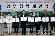 (경남도민뉴스) = 함양산삼항노화엑스포조직위원회(위원장 김경수 도지사)는 25일 함양상림공원 내 항노화관 1층 회의실에서 「2020 함양산삼항노화엑스포」 성공개최를 위해 영호남 자원봉사센터와 업무협약을 체결했다. 이날 협약에는 남원시·장수군·진안군·진주시·거창군·함양군·산청군 등 지리산권 영호남 7개 시·군 자원봉사센터가 참여한 가운데, 엑스포의 성공적 개최를 위해 상호 긴밀한 업무협력이 필요하다는데 인식을 같이하고 내년 엑스포 행사 기간 중 ▲자원봉사자 및 전문인력 지원 ▲자원봉사단 교류 ▲참여 자원봉사자에 대한 각종 편의 제공 등을 상호 협력해 나가기로 했다. 장순천 조직위원회 사무처장은 “「2020함양산삼항노화엑스포」를 계기로 영호남이 교류하고, 상호 발전을 위한 협력체계를 구축하는데 큰 의미가 있다”면서 “엑스포 성공을 위해서는 자원봉사자의 역할이 무엇보다 중요한 만큼, 영호남 각 자원봉사센터의 힘을 모아 줄 것”을 당부했다. 엑스포 조직위원회는 앞으로도 환경·