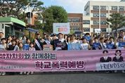 [경남도민뉴스=최재경 기자] 울산 강북교육지원청은 16일 오전 북구 동천초등학교 정문 앞에서 동천초 학생자치회와 지역 관계기관과 함께 ‘학교폭력 예방 홍보활동’을 펼쳤다. 이번 홍보활동은 학생들이 스스로 학교폭력 예방의 주체가 돼 안전하고 평화로운 학교를 만들어가고자 추진됐다. 강북교육지원청은 북부경찰서, 울산북구청소년상담복지센터 등 관계기관과 협력해 학생 맞춤형 예방 활동을 지원했다. 홍보활동은 ‘학교폭력 제로(Zero) 지킴이’ 대표 선서를 시작으로, 학생들이 직접 예방 문구가 적힌 손팻말을 들고 구호를 외치는 방식으로 진행됐다. 이어 활동 응원을 담은 즉석 사진 촬영과 스티커 부착 활동이 이어지며 학생들의 높은 호응을 얻었다. 학생들은 또래 친구들에게 직접 학교폭력의 위험성과 예방의 필요성을 설명하고, 평화로운 학교문화를 만들자는 실천 의지를 함께 다졌다. 참여 학생들은 이번 활동으로 ‘학교폭력 없는 안전한 학교는 모두의 협력이 필요하다’라는 공감대를 형성하며 활동의 의미를 되새겼다. 동천초 학생자치회 대표는 “우리가 직접 학교폭력 예방의 주체가 될 수 있