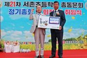 [경남도민뉴스=권중환 기자] 함안군 대산면에서는 지난 19일 제21차 서촌초등학교 총동문회 및 한마음축제가 성황리에 개최됐다. 이번 행사에서는 모교와 지역사회를 위한 나눔의 일환으로, 총동문회가 대산초등학교에 장학금 200만 원을 기탁해 눈길을 끌었다. 이날 기탁된 장학금 200만 원은 대산초등학교 학생들의 학업 장려 및 복지 증진을 위해 사용될 예정이다. 서촌초등학교는 1939년 대산공립보통학교 기동 간이학교로 인가를 받아 설립된 이후 1999년 구혜초등학교(현 대산초등학교)로 통합되어 폐교될 때까지 총 2500여 명의 졸업생을 배출하며, 지역사회 발전에 큰 기여를 해왔다. 비록 학교는 문을 닫았지만, 총동문회를 중심으로 동문 간의 유대와 전통은 여전히 활발히 이어지고 있다. 한편, 이번 행사에서는 ㈜아라리농산 강종주 대표가 서촌초등학교 총동문회 신임 회장으로 취임했다. 강종주 회장은 평소에도 지역사회 내 어려운 이웃들을 위해 꾸준히 물품을 기탁해왔으며 최근에는 산청과 의성 지역의 산불 이재민을 위한 구호 물품도 직접 전달하는 등 사회공헌 활동에 앞장서고 있다