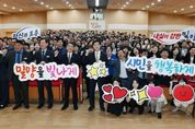 [경남도민뉴스=나희준 기자] 밀양시는 1일 시청 대강당에서 본청, 직속 기관, 읍면동, 산하기관 직원 등 300여 명이 참석한 가운데 5월 직원 소통의 날을 개최했다고 밝혔다. 이번 직원 소통의 날은 표창 수여, 리트릿 프로그램 홍보 영상 시청, 훈시 말씀, 소통 이벤트 순으로 진행됐다. 먼저 장애인 복지 증진과 도민 보건 향상에 기여한 공무원 2명, 안전한 공공서비스 제공에 기여한 밀양시시설관리공단 직원 5명에게 표창이 수여됐다. 소통 이벤트로는 도서 추첨이벤트, 부서별 봄꽃 명소 최고의 인증샷 선정 이벤트를 진행했다. 시장과 부시장이 직접 추천한 도서를 추첨을 통해 직원들에게 전달해 정서적으로 교감하는 기회를 제공했다. 또한, 지난 3월부터 4주간 추진한 부서별 봄꽃 명소 인증샷 중 직원 설문조사에서 최다 득표한 6개 부서를 공개하는 깜짝 이벤트를 진행해 즐거운 직장 분위기를 조성했다. 특히, 이날 안병구 시장의 취임 1주년을 맞아 새로운 각오로 함께 나아갈 시정을 응원하고 결속을 다지는 직원들의 깜짝 소감 발표와‘밀양을 빛나게 시민을 행복하게’라는 시정 비전을 다 함께