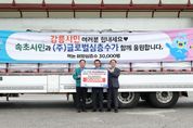 [경남도민뉴스=류종길 기자] 지속되는 가뭄으로 강릉시와 시민들이 물 절약에 힘쓰고 있는 가운데, 14일 오전 11시 30분 이웃 도시인 속초시(시장 이병선)에서 생수 3만 병(3천만 원 상당)을 전달하며 온정을 전했다. 이번 생수는 속초시청 직원들의 자발적인 성금으로 마련한 1만 병(1천만 원 상당)과 속초에 위치한 ㈜글로벌심층수(대표 김진규)에서 기부한 2만 병(2천만 원 상당)으로, 특히 가뭄으로 어려움을 겪고 있는 고지대 및 비상급수지역, 관내 취약계층 등에 전달될 예정이다. 이병선 속초시장은 “이번 지원은 물 한 모금이 절실한 이웃에게 전달하는 속초 시민들의 정성”이라며 “시민들의 따뜻한 마음이 강릉 시민들에게 단비 같은 희망이 되기를 바라며, 앞으로도 지자체 간 상생 협력을 더욱 강화하겠다.”고 말했다. ㈜글로벌심층수 김진규 대표는 “같은 강원도민으로서 어려움을 함께 나누는 것이 당연하다”며, “작은 물병 하나하나가 강릉 시민들에게 큰 힘이 되어 어려움을 이겨나가는 계기가 되기를 바란다.”고 전했다. 이에 김홍규 강릉시장은 “지원해주신 생수는 가뭄으로 어려움을 겪고 있는 강릉시에게 가뭄의