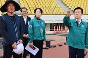 [경남도민뉴스=권중환 기자] 조규일 진주시장은 10일 제64회 경상남도민체육대회의 성공적인 개최를 위하여 진주종합경기장 및 송백파크골프장을 방문해 현장 관계자들을 격려하고 경기장 점검을 실시했다. 이날 현장 점검에서는 개회식 및 육상, 롤러 종목 등이 펼쳐지는 진주종합경기장과 파크골프 종목이 진행될 송백파크골프장의 전반적인 경기장 상태와 부대시설 등을 중점 점검했다. 시는 현재 도민체전의 원활한 추진을 위하여 총 사업비 59억 원을 투입해 경기가 치러질 시설들을 보수하고 있으며, 이달 말까지 공사를 마치고 체전 준비에 만전을 기할 계획이다. 조규일 시장은 “경기시설의 인프라 상태, 안전 관리, 교통 등 모든 분야에서 도민체전을 치르기에 손색없는 경기환경이 준비되어 가고 있다”며 “이번 점검을 토대로 체전 개최 전까지 미비한 점을 보완하여 선수와 관객 모두 안전하게 경기를 즐길 수 있도록 최선을 다하겠다”고 말했다. 한편 진주시에서는 제64회 경상남도민체육대회 기간인 5월 2일부터 5일까지 진주종합경기장 외 종목별 경기장에서 36개 종목의 경기가 운영된다.