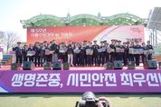 [경남도민뉴스=도문호 기자] 세종특별자치시가 20일 조치원체육공원에서 ‘제5주년 의용소방대의 날’ 기념식을 개최했다. 이번 행사는 지역 안전을 위해 헌신해 온 의용소방대의 노고를 격려하기 위한 자리로, 최민호 시장과 임채성 시의회 의장, 유관기관 단체장, 의용소방대원 등 700여 명이 참석했다. 기념식은 허왕 의용소방대연합회장의 환영사와 유공자 포상, 주제 영상 시청, 기념사, 축사 순으로 진행됐다. 유공자 포상은 대통령 표창을 받은 이순구 장군면 여성의용소방대원과 행정안전부장관 표창을 받은 이병진 전의면 남성의용소방대원, 이채원 어진동 여성의용소방대원 등 총 70명에게 수여됐다. 이날 행사에서는 의용소방대의 소방기술경연대회도 함께 열렸다. 대원들은 4인 조법, 소방호스 전개 및 회수, 심폐소생술 등 3개 종목에서 그동안 갈고닦은 기량을 마음껏 뽐냈다. 각 종목에서 1위를 차지한 팀은 오는 5월 전국 의용소방대 소방기술경연대회에 세종시 대표로 출전하게 된다. 최민호 시장은 “의용소방대가 시민의 안전과 생명을 보호하는 일에 힘써주신 덕분에 세종시가 더욱 안전한